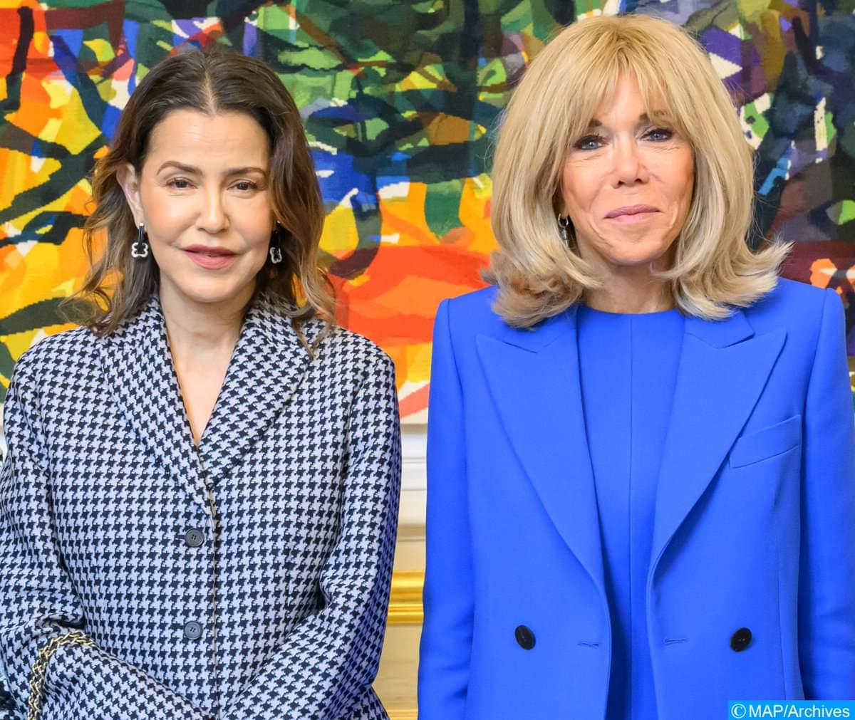 وكانت صاحبة السمو الملكي الأميرة للا مريم في استقبال السيدة بريجيت ماكرون لدى وصولها إلى إعدادية “أبي ذر الغفاري”، حيث استعرضتا تشكيلة من القوات المساعدة أدت التحية.