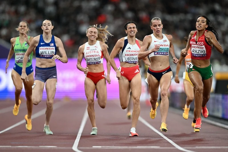 وسجلت رزيقي ( 28 سنة) توقيتا قدره 1:59.82 دقيقة ،خلف البطلة الأولمبية البريطانية كيلي هودجكينسون ،صاحبة أسرع توقيت في المجموعة الأولى بـ 1:59.79 دقيقة.